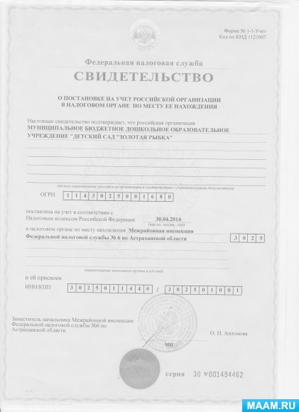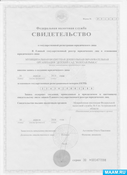 Свидетельство о регистрации юридического лица